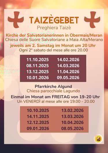 Du wirst regelmäßig über Neuigkeiten, Initiativen und Veranstaltungen des Jugenddienst Meran und seiner Partner informiert. Verpass' nichts! 🌿