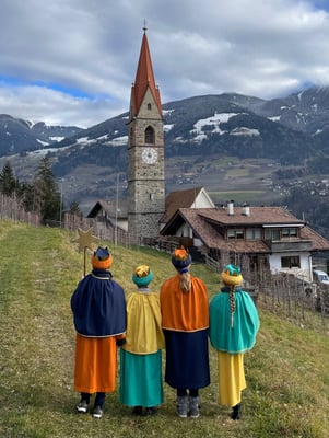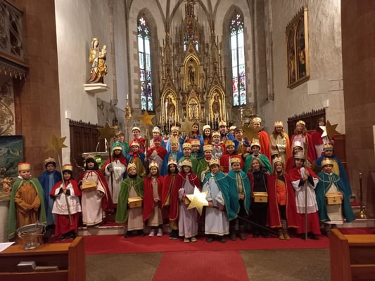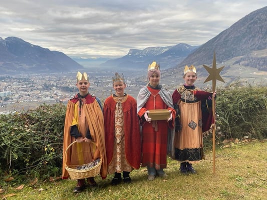 Wie jedes Jahr, zogen auch um den Dreikönigstag 2024 viele verschiedene Sternsinger-Gruppen aus dem Dekanat Meran durch die Straßen um Spenden für Menschen in Not zu sammeln.