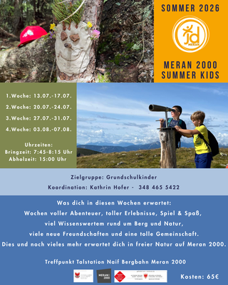 gefragt sind.“, so Silvia Kofler, Gesamtkoordination Sommer vom Jugenddienst Meran. „Wir hoffen auch weiterhin jungen begeisterte Menschen zu finden, die gerne im Sommer mit Kindern arbeiten und
