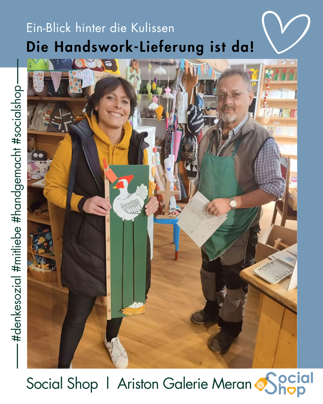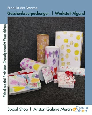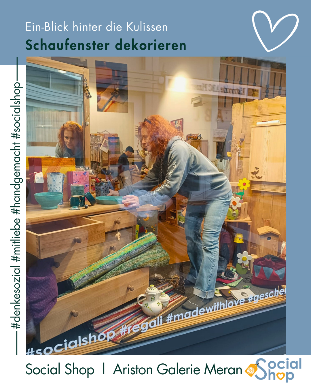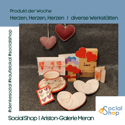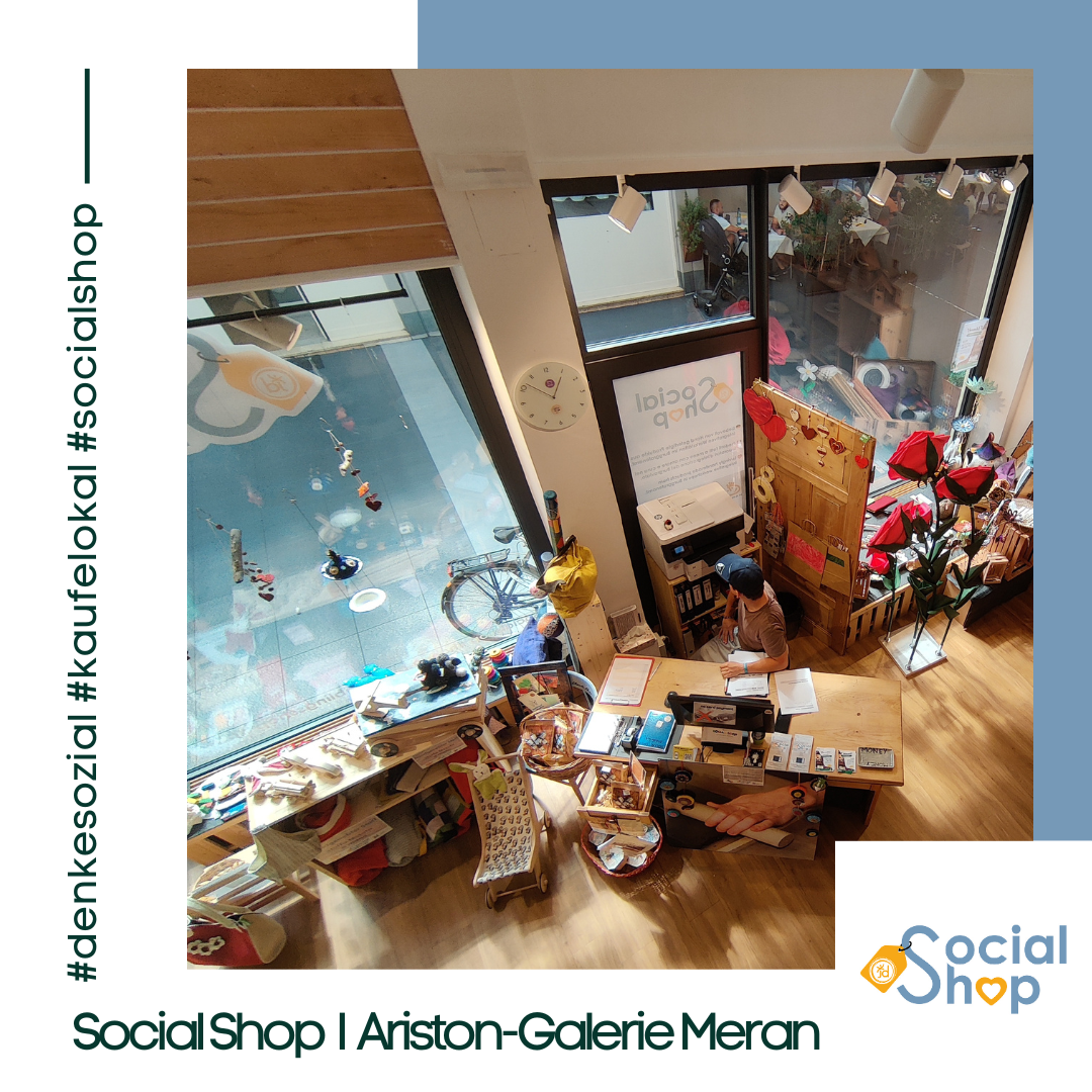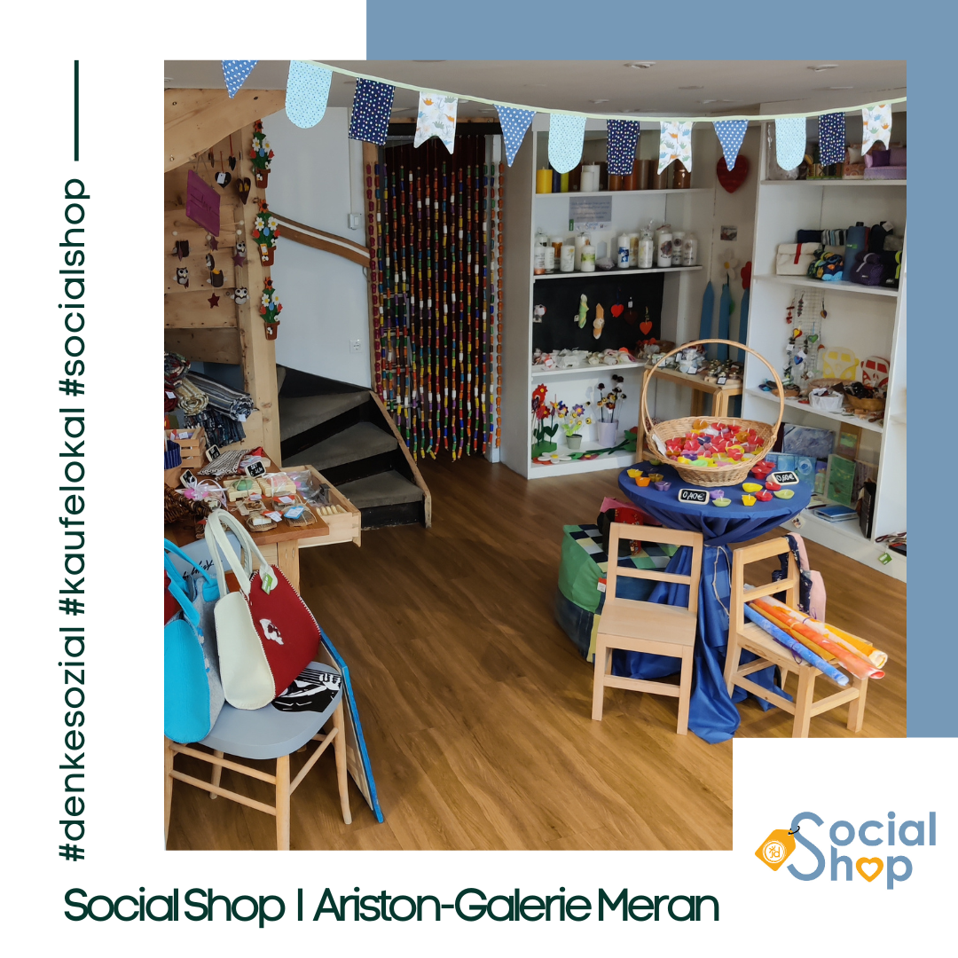 Der Social Shop bietet 10 niederschwelligen, sozialen Einrichtungen sowie Arbeitsintegrations- und Rehabilitationswerkstätten im Burggrafenamt die Möglichkeit, ihre liebevoll gestalteten und