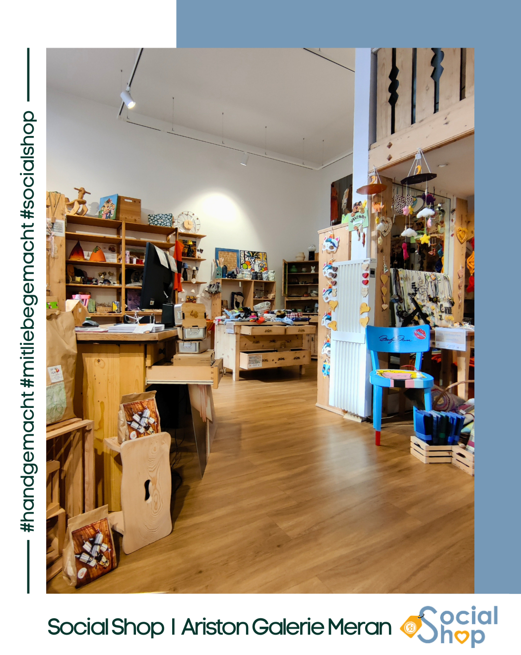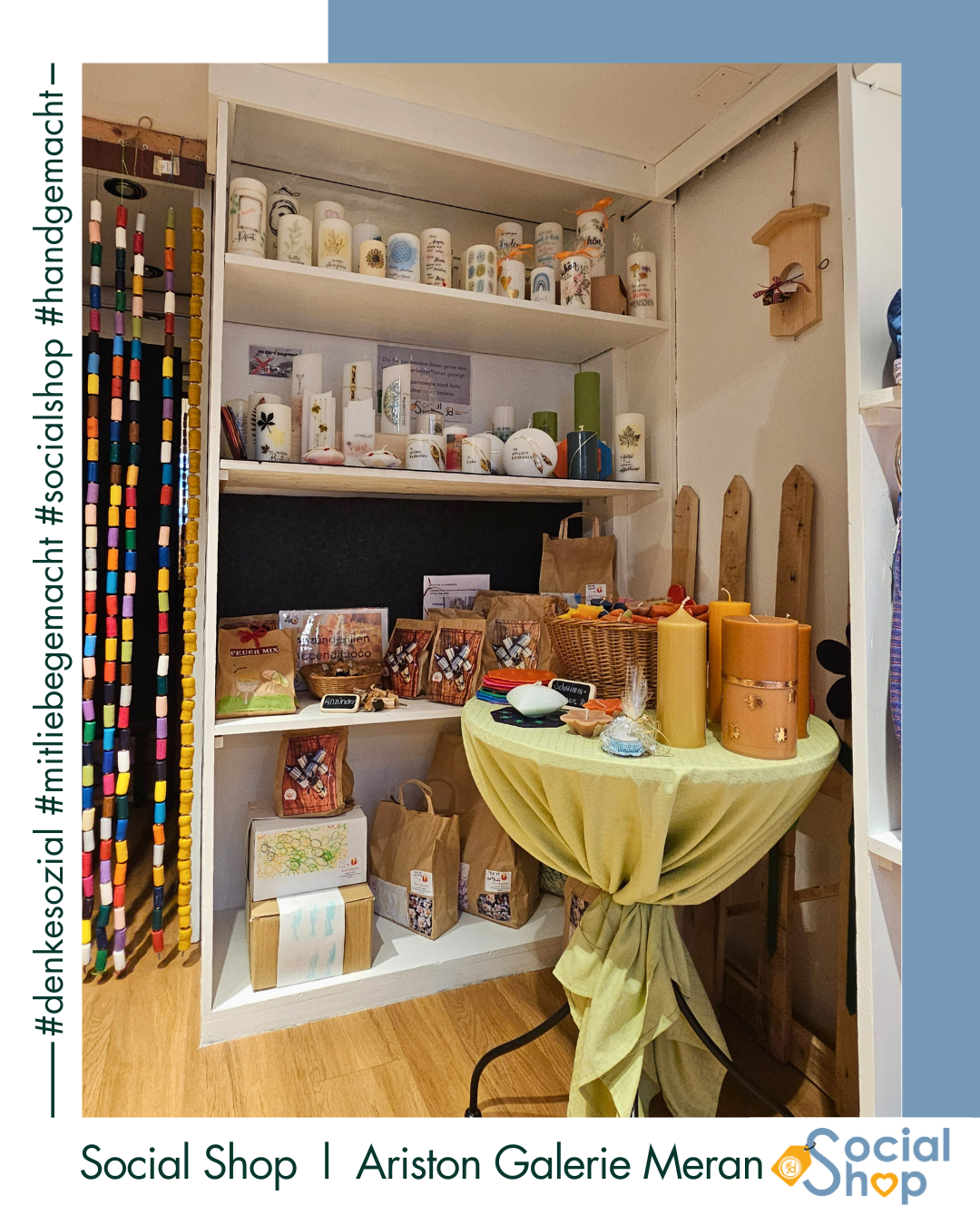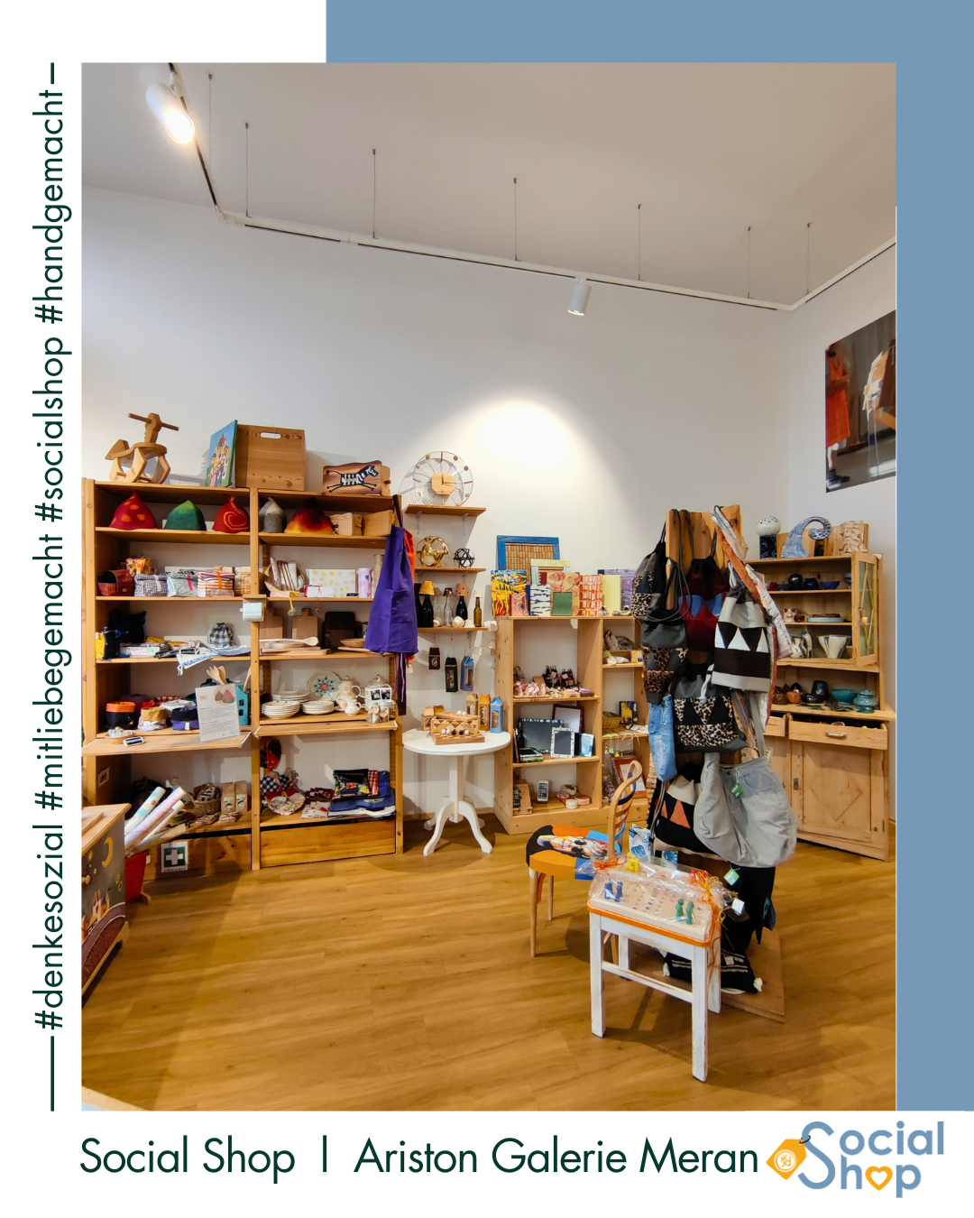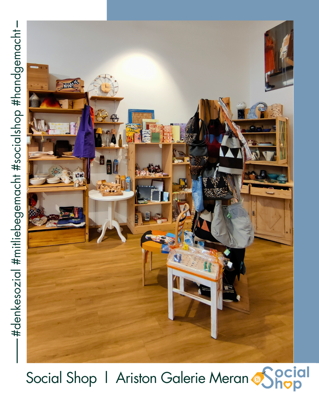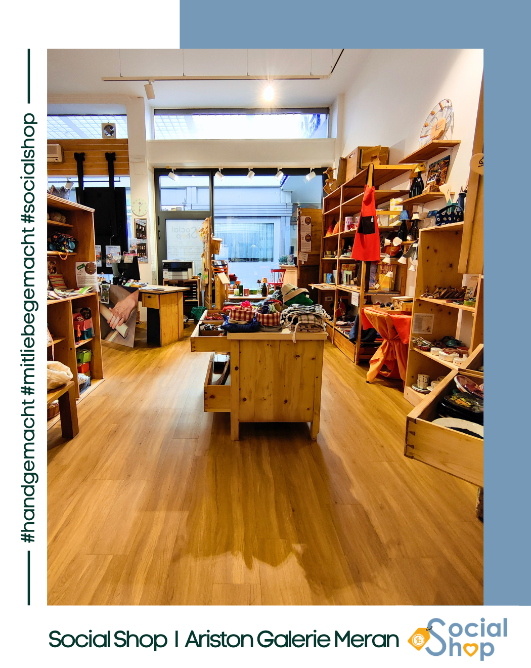Der Social Shop bietet 10 niederschwelligen, sozialen Einrichtungen sowie Arbeitsintegrations- und Rehabilitationswerkstätten im Burggrafenamt die Möglichkeit, ihre liebevoll gestalteten und