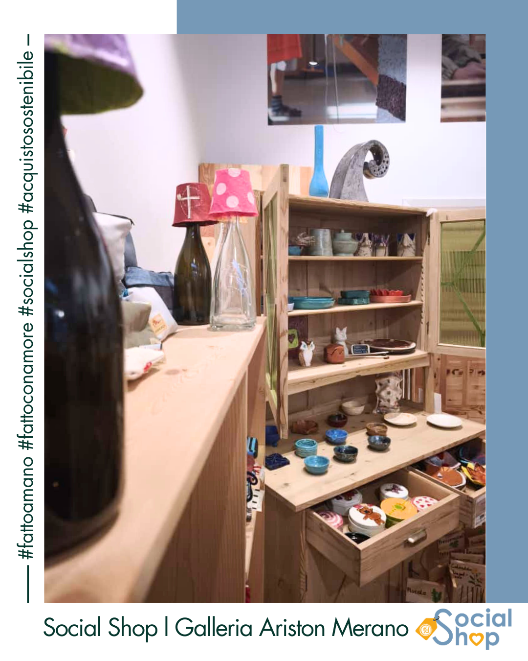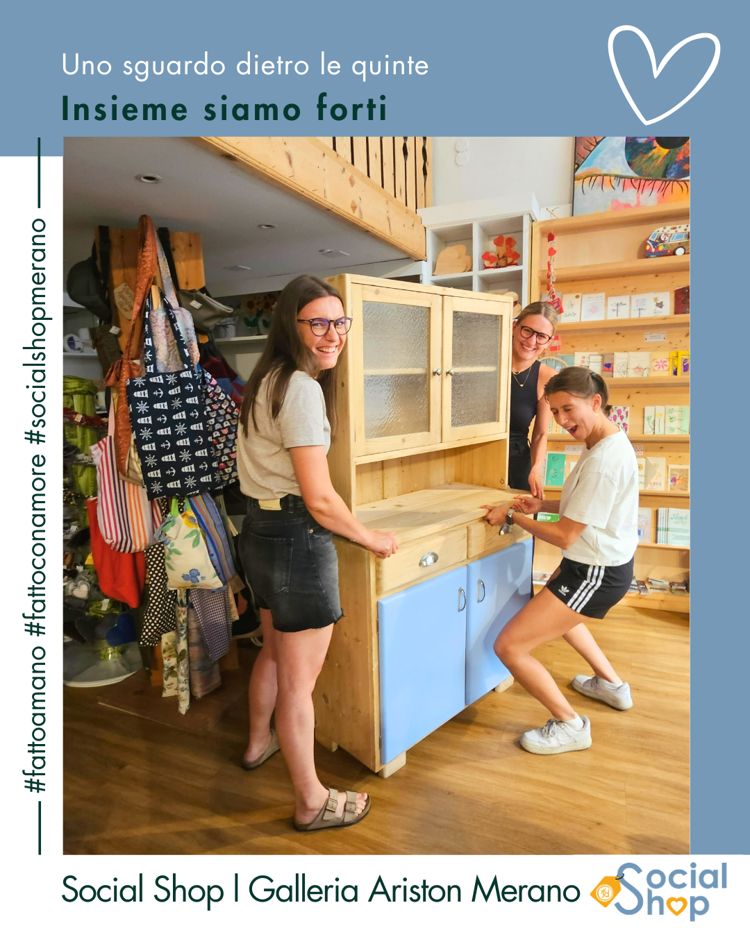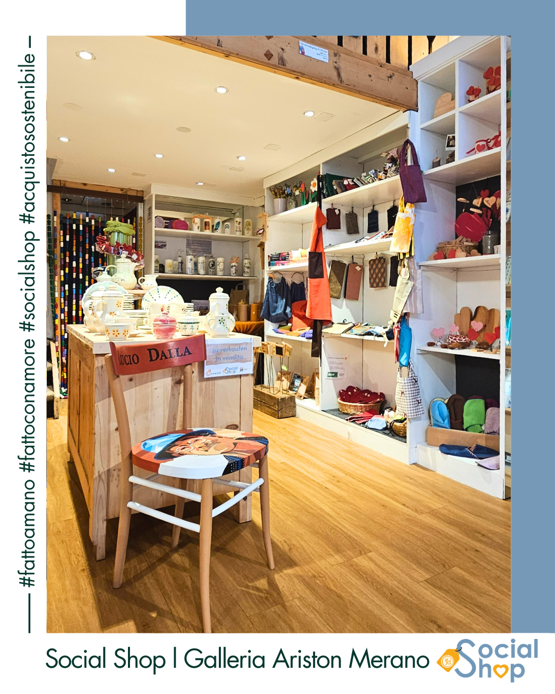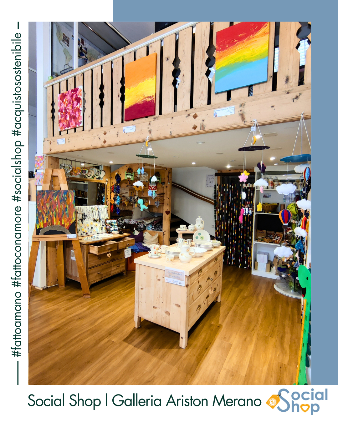 Der Social Shop bietet 10 niederschwelligen, sozialen Einrichtungen sowie Arbeitsintegrations- und Rehabilitationswerkstätten im Burggrafenamt die Möglichkeit, ihre liebevoll gestalteten und
